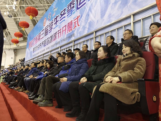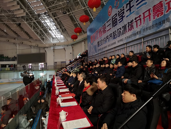 冰天砺斗志,碎玉炼初心。2019年1月20日,我省第三届学生冬季运动会开幕式在齐齐哈尔市运动中心冰球馆隆重召开, 省市领导孙珅、孙东生、赵国刚、陈哲、佟朋、杜军、赵广、刘艳芳及省直有关部门、地市相关负责同志等参加了开幕仪式。