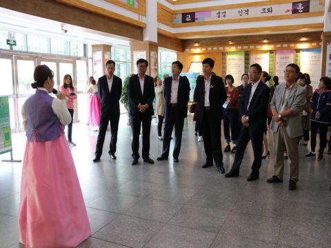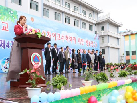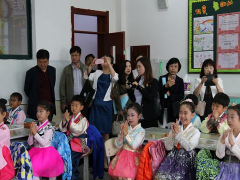 会议由东北朝鲜民族教育科学研究所俞永虎主任主持。珲春市第一实验小学校张志丹、丁桂香、李燕姬、邹智慧、兰春梅、张璇6位实验教师结合课题研究进行了课堂教学展示,与会与会嘉宾共同观摩了学校课题研究团队的课堂观察议课评课活动,本次活动不仅呈现了小班化教育环境下个性差异课堂教学实施、评价策略的研究过程,同时也展示了学校一年半以来教育科研成果,与会领导还在引导员引领下共同观摩了课题研究过程材料、益智课程、特色活动课程、民族传统体育项目展示,参观了富有朝鲜族特色的校园文化育人环境建设,听取了学校“十三五”课题研究中期报告。