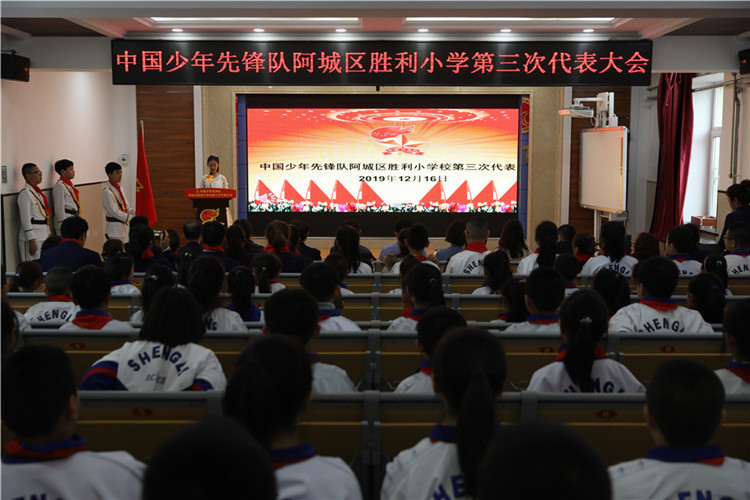 12月16日,中国少年先锋队阿城区胜利小学校第三次代表大会胜利召开。阿城团区委、区教育局、区关工委相关领导和胜利小学优秀的中队辅导员代表、家长代表、少先队员代表共计116人参加活动。